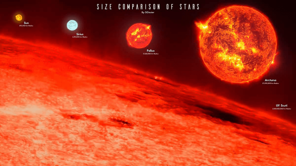 One of them is UY Scuti—currently considered the largest star ever observed. If Earth were the size of a volleyball, UY Scuti would tower like a mountain range.